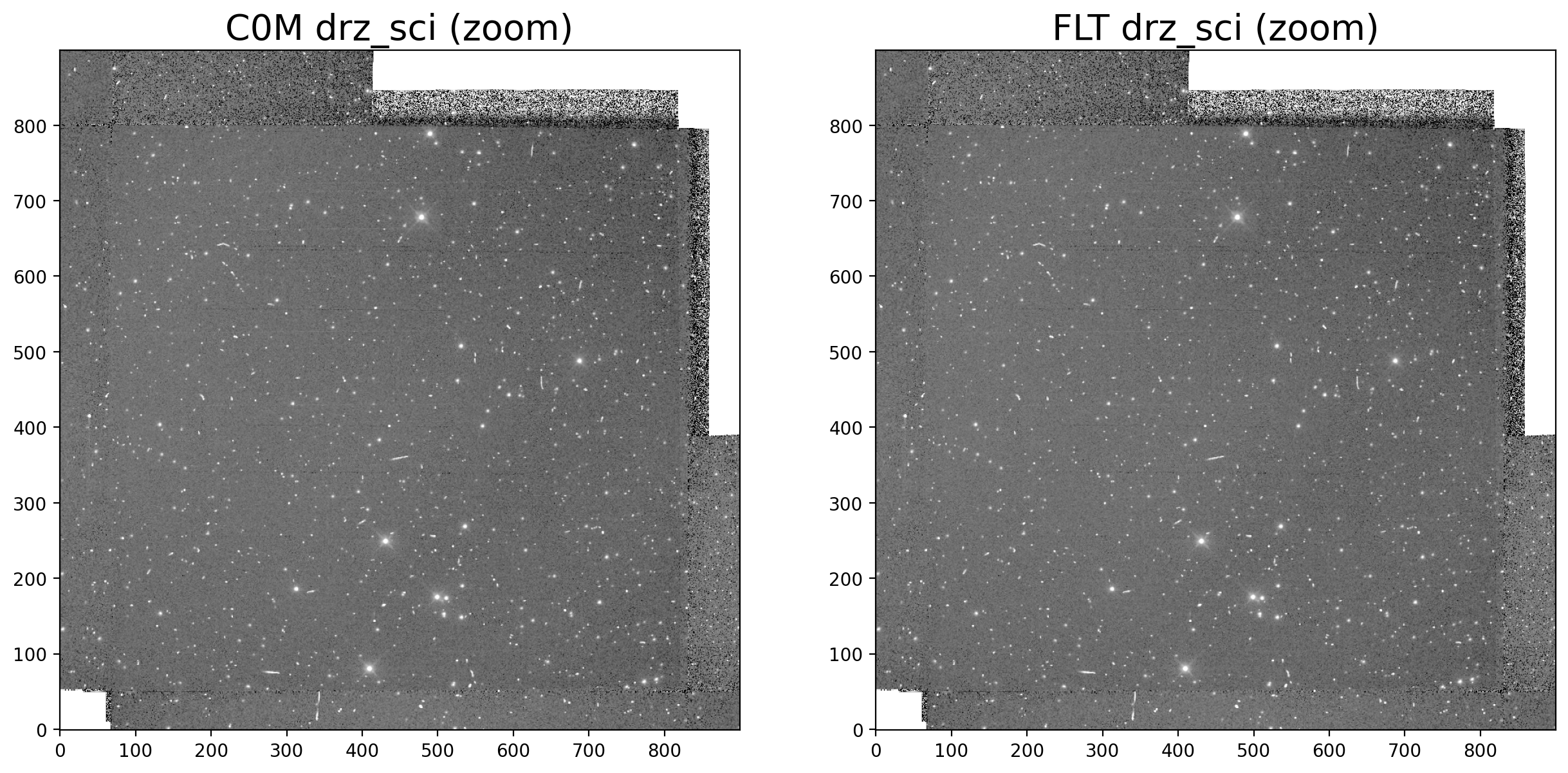 ax[1].set_title('FLT drz_sci (zoom)', fontsize=20)